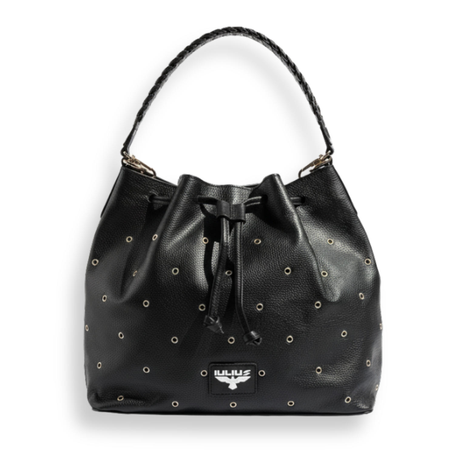 Bolso Bucket de Cuero Negro con Tachuelas – Estilo Urbano – IULIUS